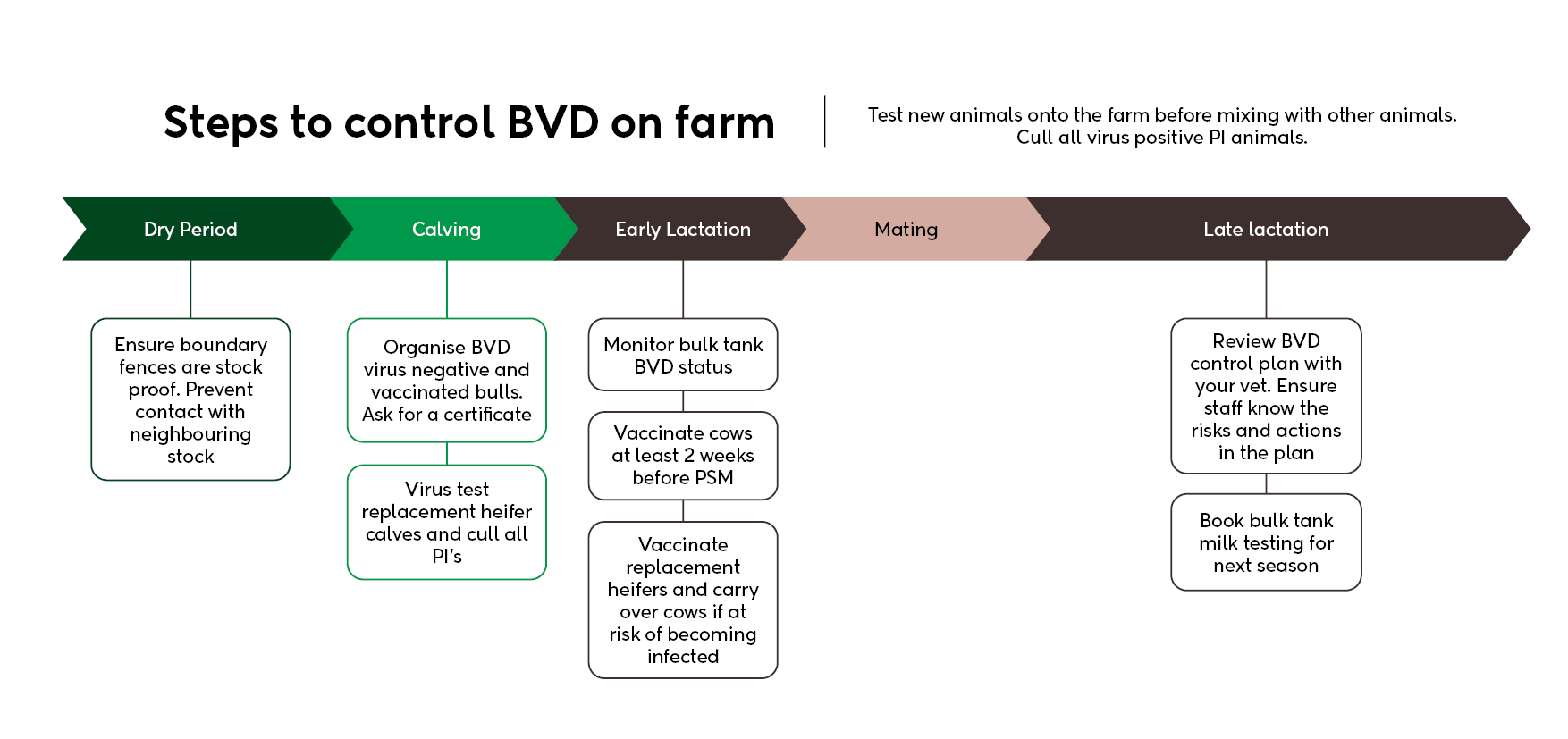 To control BVD, the formation of PI calves must be prevented by making sure cows in early pregnancy do not become infected with the virus.