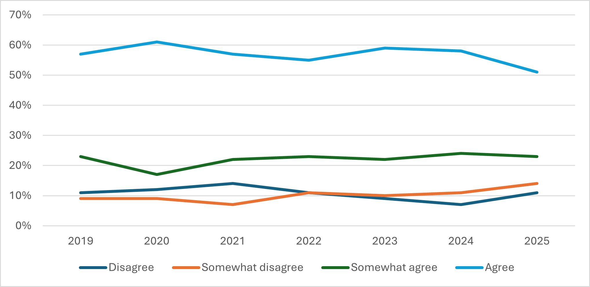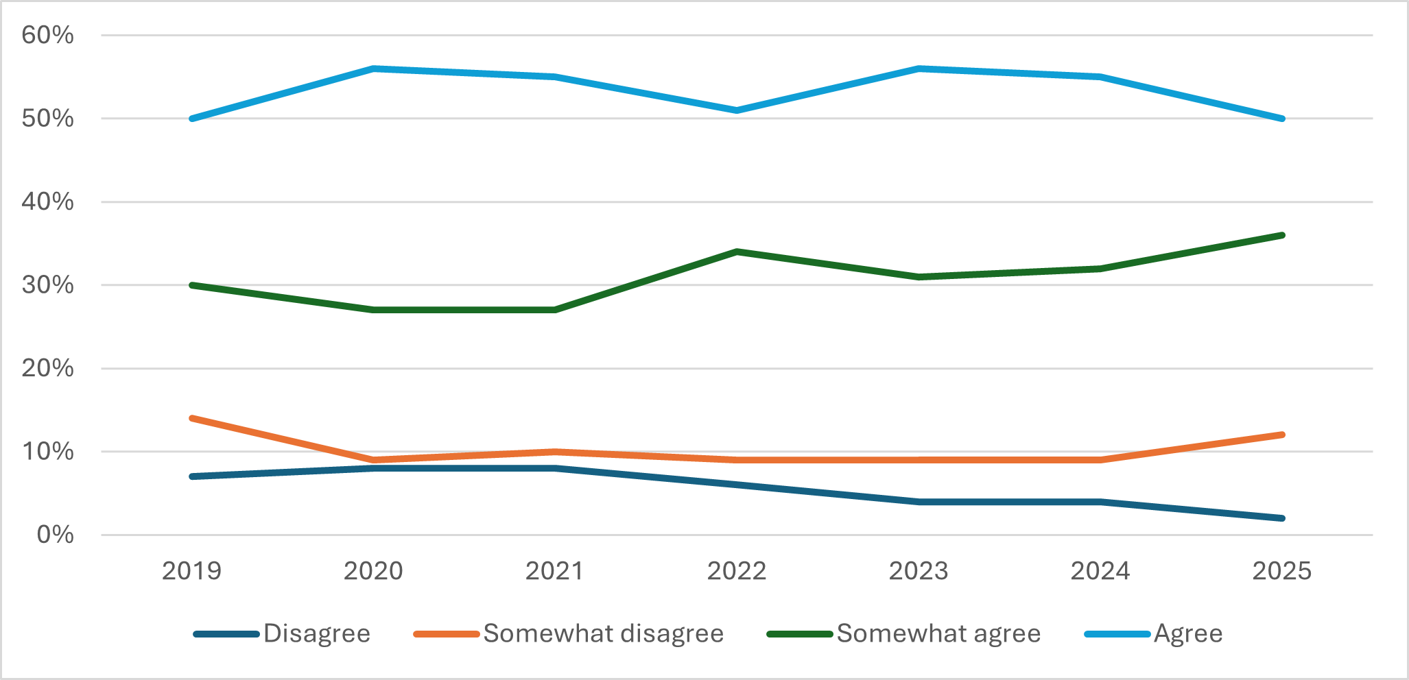 In 2025, 80–86% of respondents intended to stay in dairy, across all roles and farm structures. However, experiences differed by career stage: